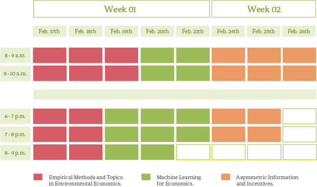 This mini-course will survey common empirical methods and topics covered in contemporary environmental economics. Each lecture will pair a method with a topic area. Planned lectures pairs include: introduction to empirical designs in environmental economics, regression discontinuity and environmental policy evaluation, differencing estimators and the health effects of pollution, fixed effects and the impacts of climate change, instrumental variables and permit trading systems, and hedonic methods and natural disasters.